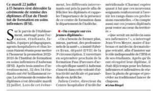 Le Dauphiné Libéré vendredi 25 juillet 2025 à l’IFSI